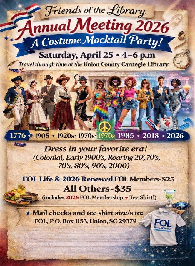 Please join the Friends of the Library at their annual meeting: A Costume Mocktail Party!